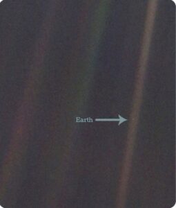 Picture of the Earth taken by Voyager, 35 years after being launched, when it reached near the edge of the solar system, 9.3 trillion miles away.